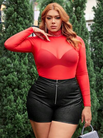 Plus Size Valentines Sexy Mesh & Beaded Detail Skirt-60%