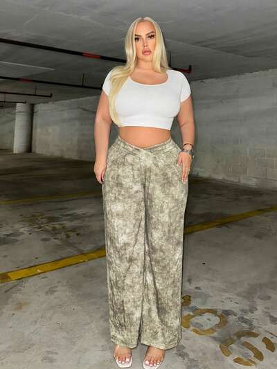 Women's Plus Size Cross Waist Wide-legged Culottes-60%