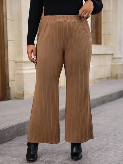 Plus Size Casual Solid Color Zipper Fly Slim Fit Flared Leg Pants-60%