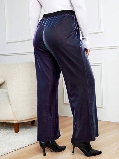 Plus High Waist Velvet Wide Leg Pants-60%
