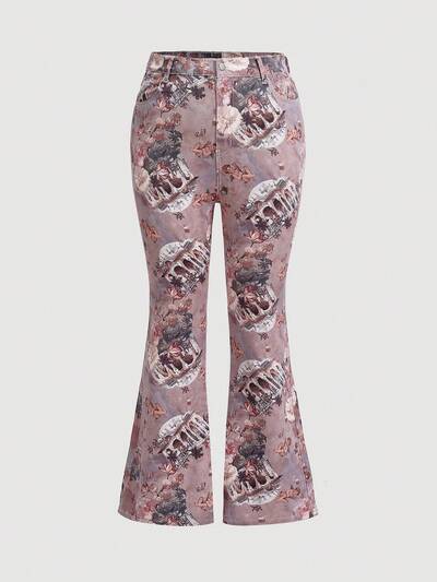 Plus Size Women'S Angel Printed Flared Jeans-29%
