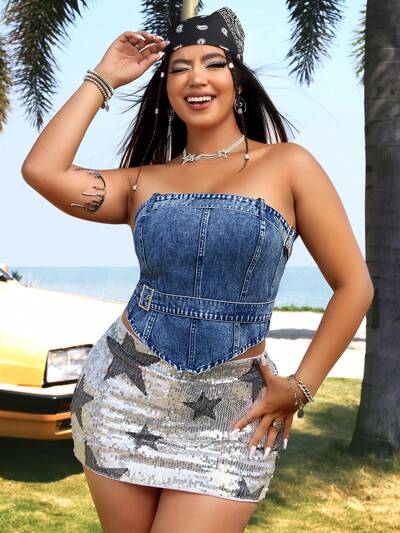 Plus Size Bandeau Denim Top-55%