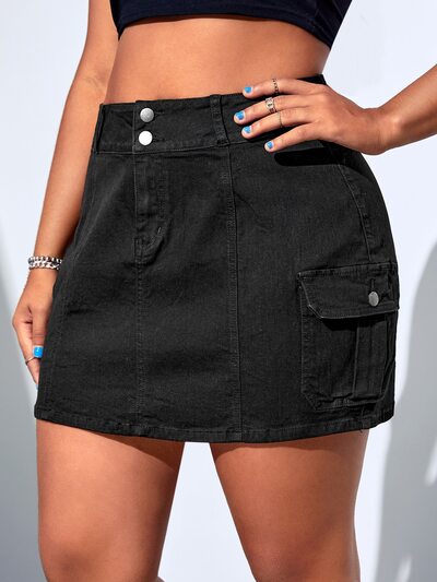 Plus Flap Pocket Denim Skirt-65%