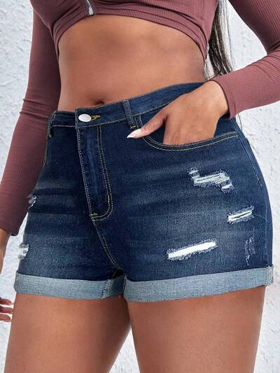 Plus Ripped Roll Up Hem Denim Shorts-29%