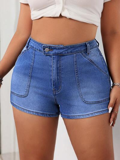 Plus Size Women's Workwear Pocketed Casual Denim Shorts-29%