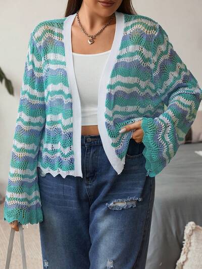 Plus Allover Chevron Pattern Scallop Trim Cardigan-60%