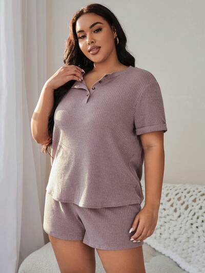 Plus Size Women's Rib Knitted Texture Casual Pajama Set-18%