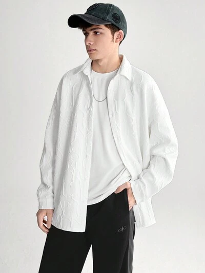 Teen Boys' Casual Comfortable Long Sleeve Shirt With Letter Embossment