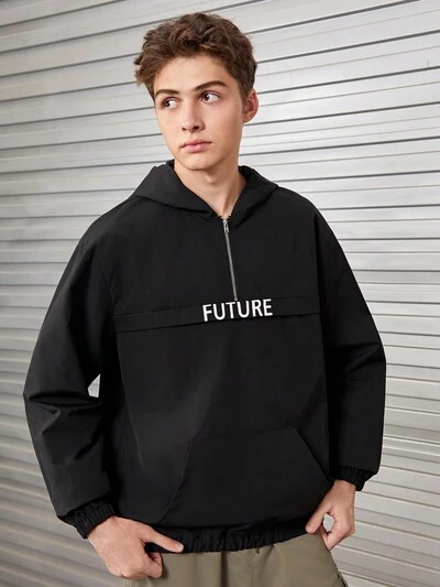 Teen Boy Letter Graphic Half Zip Hooded Jacket-65%