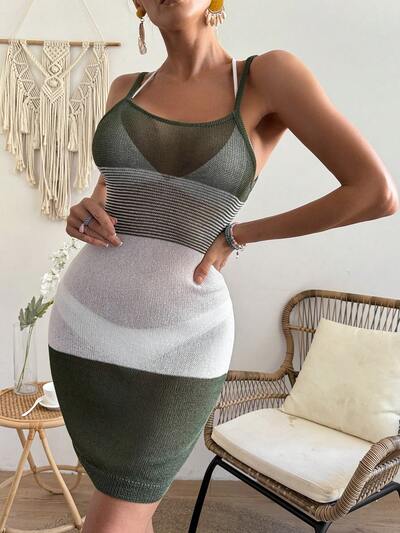 Women's Color-Block Knitted Spaghetti Strap Sweater Dress-65%