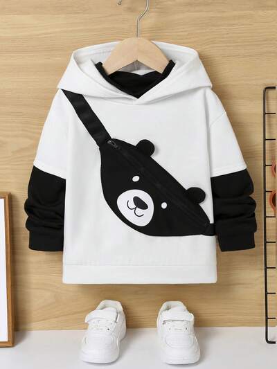 Young Boys Casual Street Style Loose Fit Knitted Teddy Bear Lining Hooded Coat And Bag (Without Sweater) Winter-60%