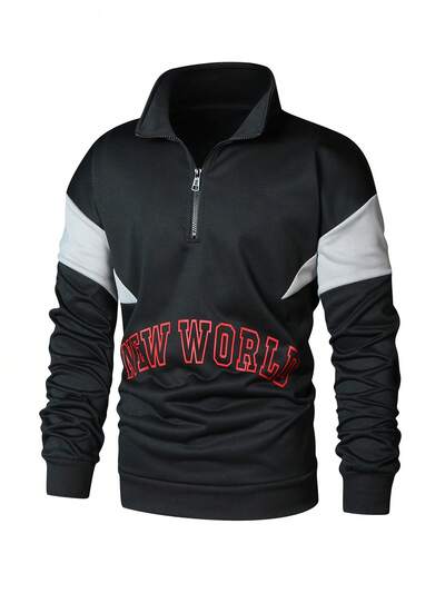 Loose Fit Men's Letter Graphic Colorblock Half Zipper Drop Shoulder Sweatshirt-60%