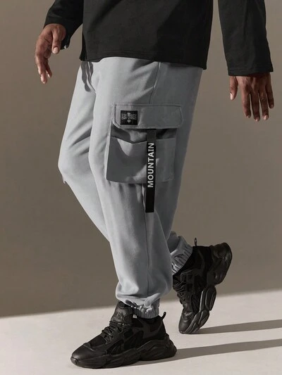 Men's Plus Size Loose Cargo Pants With Letter Printed Taping-60%