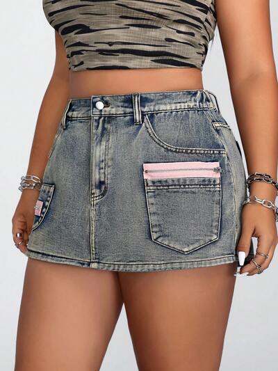 Plus Size Women's Zipper Pocket Casual Denim Skort-29%