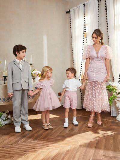 3pcs/Set Tween Boy Stylish Short Sleeve Shirt, Plaid Shorts And Vest Gentleman Suit-43%