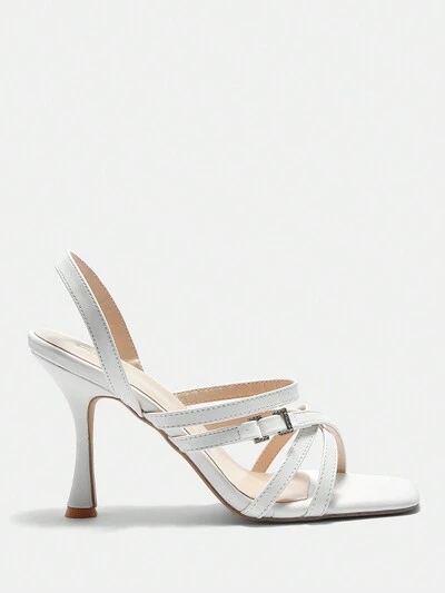 Fashionable French Style Metallic Buckled Open Toe High Heeled Sandals For Spring And Summer-14%