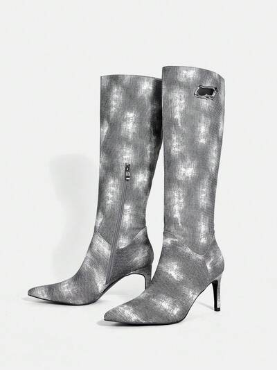 Women's Tie-Dye Pointed Toe Side Zipper Design Fashion High Heel Mid-Calf Boots-60%