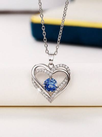 1pc Elegant Cubic Zirconia Heart Pendant Necklace, Suitable For Women's Daily Wear