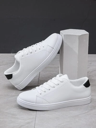 Men Minimalist Lace-Up Front Skate Shoes, Sporty Outdoor Sneakers Men Business Shoes Valentines