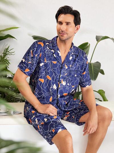 Men's Random Printed Short Sleeve And Shorts Home Suit Set-19%