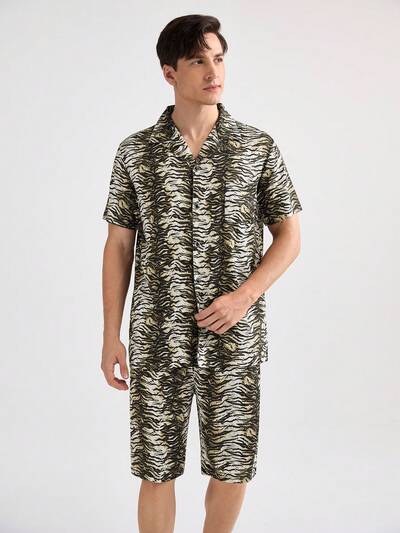 Men's Random Printed Short Sleeve And Shorts Homewear Set-18%