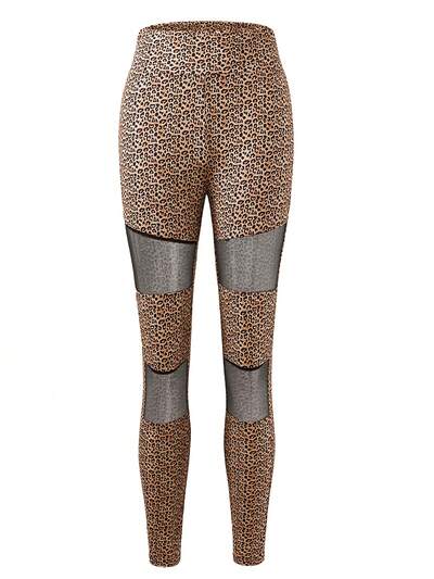 Teen Girl Sheer Leopard Print High Waisted Comfortable Elastic Leggings For Elegant-65%
