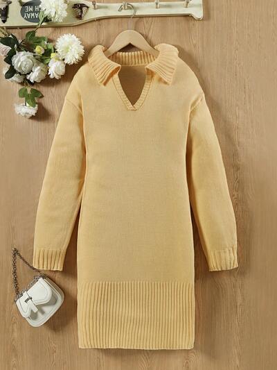 Teenage Girls' Solid Color Drop Shoulder Sweater Dress