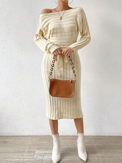 Asymmetrical Neck Drop Shoulder Bodycon Sweater Dress-65%