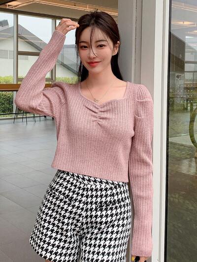 Solid Sweetheart Neck Ribbed Knit Sweater Fall-60%