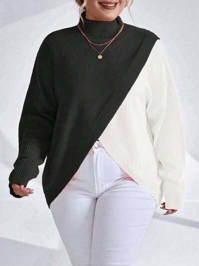 Plus Size Color Block Asymmetrical Hem Pullover Sweater Knit Pullover Fall Winter Sweater-60%