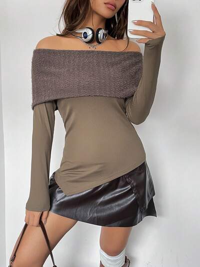 Asymmetrical Neck Contrast Sequin Tee-65%