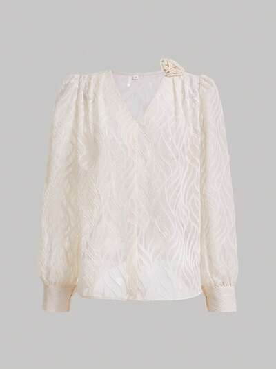 Solid Stereo Flower Blouse Fall Cloth For Women-32%