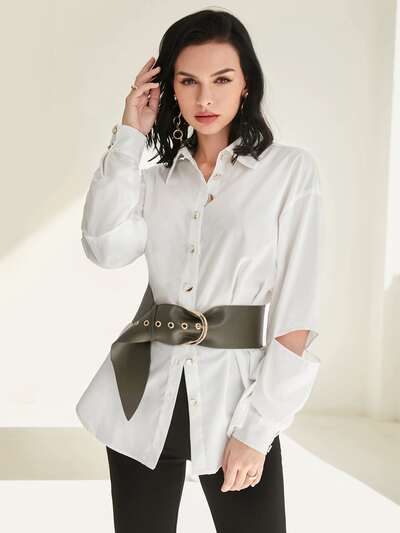 Button Front Cut Out Drop Shoulder Shirt Without Belt