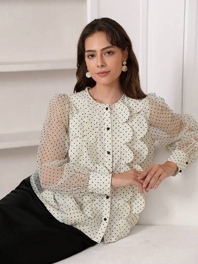 Lace Collar & Cuff Long Sleeves Top-65%