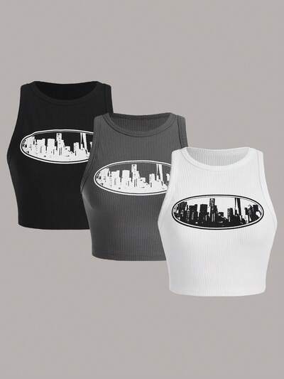 3pcs/Set Plus Size Women Stylish Printed Crop Tops-30%