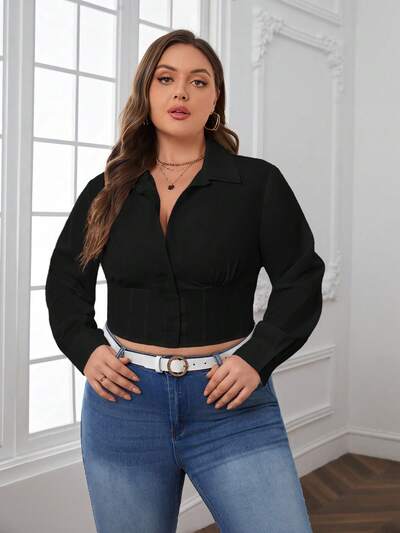 Plus Size Women's Turn-Down Collar Long Sleeve Shirt-60%