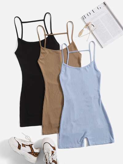 3pcs Solid Backless Cami Romper-65%