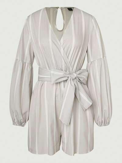 Striped Print Lantern Sleeve Belted Romper Fall Cloth For Women-65%