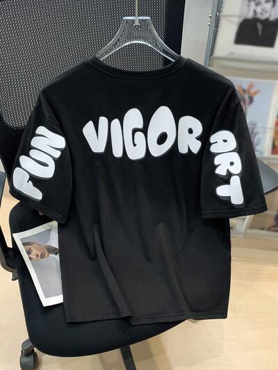 Tween Boy Fashionable Casual T-Shirt With Letter Print And Color Block Design, Round Neck-46%