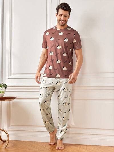 Men'S Cartoon Letter Print Homewear Set-18%
