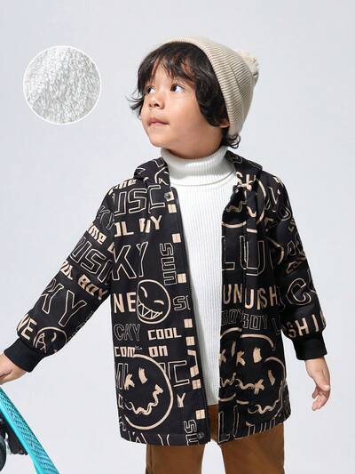 Young Boy Letter Graphic Teddy Lined Hooded Coat