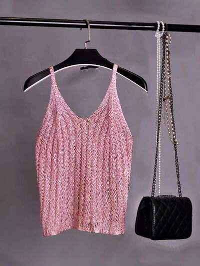Plus Size Women's Knitted Sleeveless Top With Pearl Embellishment-60%