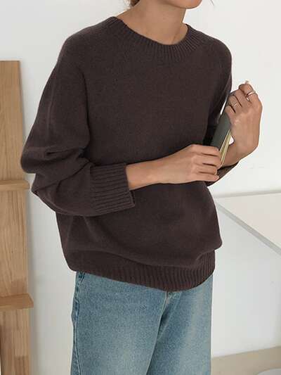 Solid Raglan Sleeve Sweater,Long Sleeve Tops,Fall Clothes-35%
