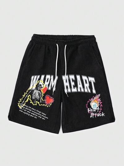Men's Slogan Print Denim Shorts, Perfect For Daily Wear In Spring And Summer