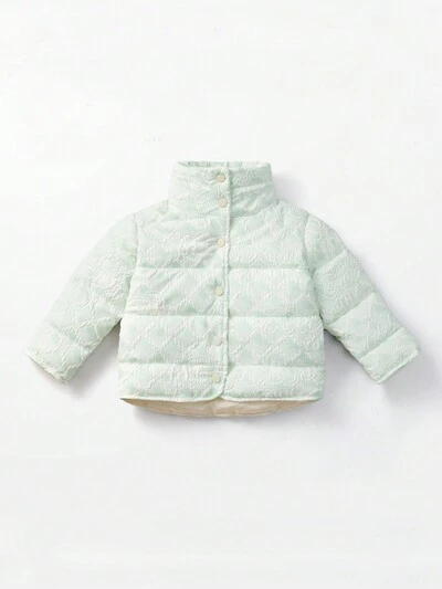 Young Boy 1pc Snap Button Up Jacquard Padded Coat
