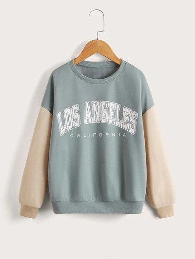 Tween Girl Letter Graphic Color Block Drop Shoulder Sweatshirt-60%