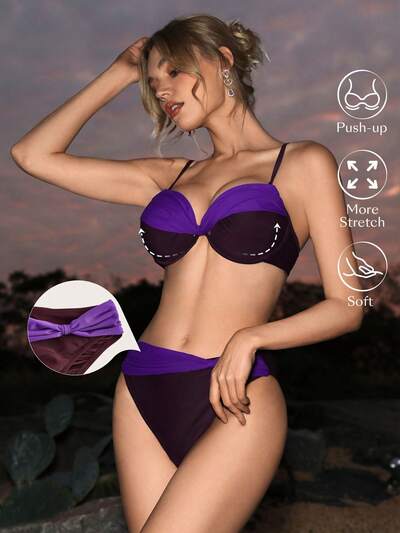Ladies' Color Block Twisted Knot Bikini Set Summer Beach-32%