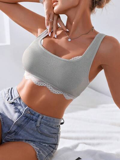 Lace Patchwork Wireless Bralette With Round Neckline-60%