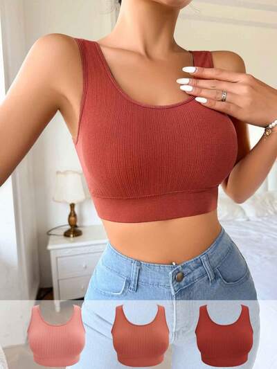 Round Neck Seamless Ribbed Bra ,3 Pcs-65%