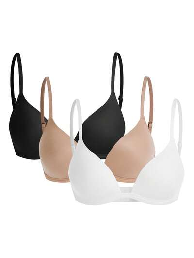 Leisure 3pcs Solid Color Wireless Bra-60%